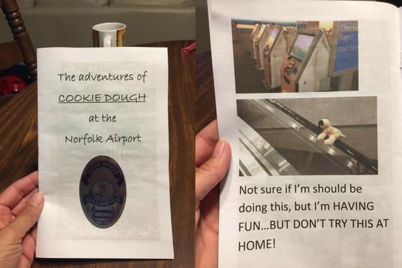 Kelly e Gussie foram buscá-lo e tiveram uma ótima surpresa ao descobrirem como ele havia se divertido por lá. “Ela foi pegá-lo hoje e os funcionários lhe deram esse livro e eu quase chorei. Aeroporto Internacional de Norfolk, vocês são incríveis”, contou Kelly em publicação no Facebook. O brinquedo ganhou um livro de aventuras, registrando tudo o que fez, como: deslizar em um corrimão de uma escada do aeroporto, ‘dirigir’ um carro da polícia, passar um tempo com aos bombeiros, visitar a área de check-in, entre muitas outras coisas legais.