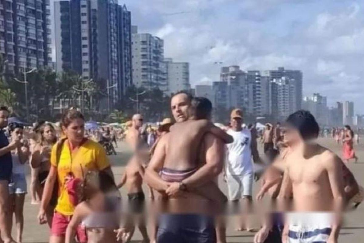 Um bombeiro, que estava de férias, não mediu esforços para salvar a vida de uma criança que estava se afogando na Praia Grande. O caso aconteceu no último domingo e repercutiu nas redes sociais, principalmente uma foto que foi tirada minutos depois do incidente.