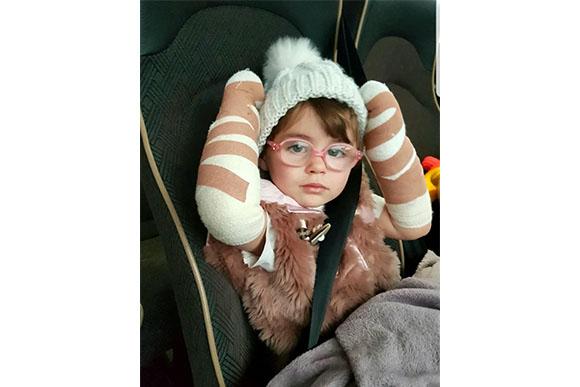 Menina de 2 anos ficou com queimaduras de 3° grau depois que uma vela colocou fogo na boneca da Minnie Mouse de sua irmã gêmea. Rosie-Faye Yeadon pegou a boneca para tentar apagar o fogo quando sua mãe não estava no quarto, mas acabou com grandes queimaduras na mão e no braço.