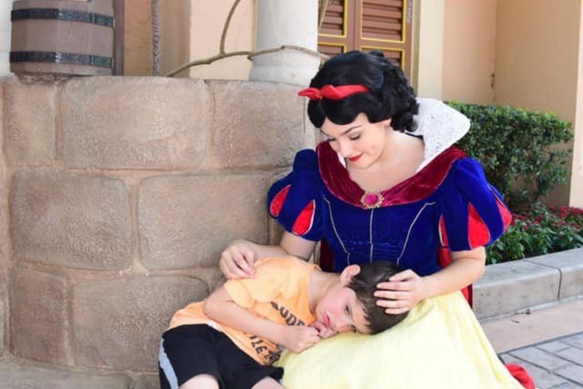 Recentemente, um caso bombou na internet. A Branca de Neve acalmou um menino autista que estava tendo dificuldades em se manter calmo enquanto aguardava na fila para conhecer a princesa. Foi ai que a atriz interferiu e resolveu a situação em um passe de mágica.