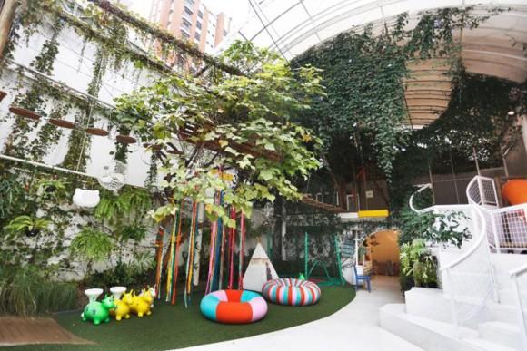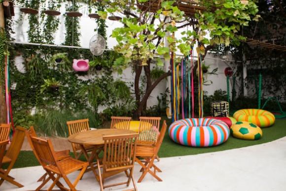 A especialista fez tudo com base no que há de mais estimulante para cada faixa-etária, incluindo também uma sala de artes, com teatro, instrumentos e atividades que retomam as velhas brincadeiras, como corridas de saco, corre-cotia, queimada e contação de histórias.