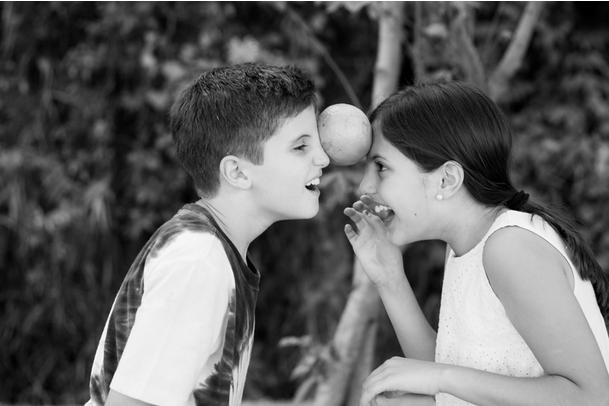 É só colocar uma música e as crianças precisam dançar em pares, pressionando uma laranja na testa sem deixar cair no chão e sem colocar as mãos na fruta. A dupla que não deixar a laranja cair, ganha a brincadeira.