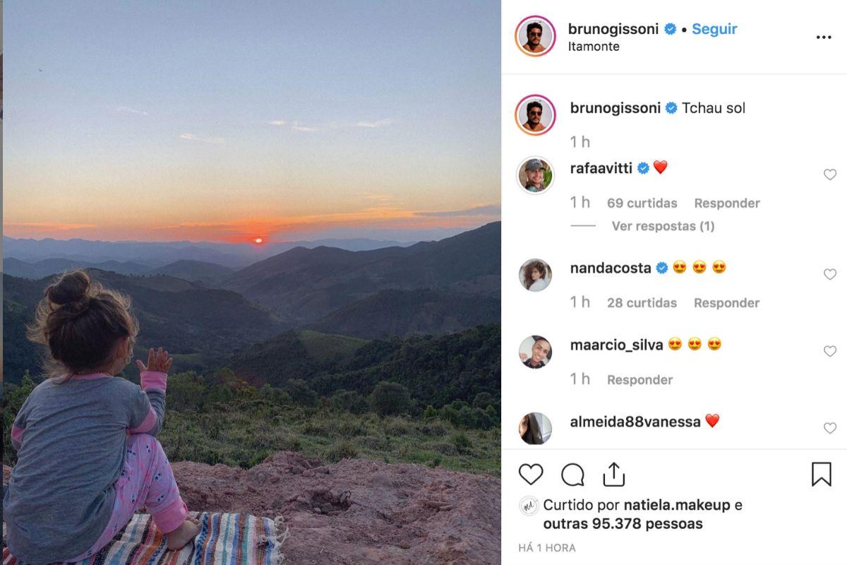 Não tem uma publicação de Bruno Gissoni e Yanna Lavigne que os seguidores não babam pela filha. Nesta segunda-feira, 4 de novembro, o ator compartilhou um foto de Madalena observando o por-do-sol.
