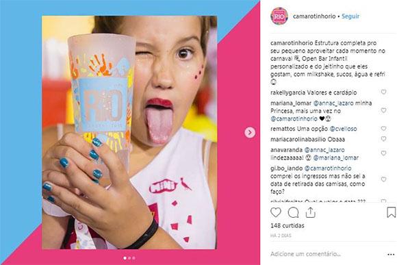 O Camarotinho é pensado para a total diversão do seu filho durante o Carnaval! Enquanto o desfile na Sapucaí está rolando, as crianças poderão aproveitar Open Bar e Open Food pensado para ele, atividades recreativas, além de O Mundo de Bita, desfile de escolas de samba mirins! É uma festa que ninguém vai querer ficar de fora!