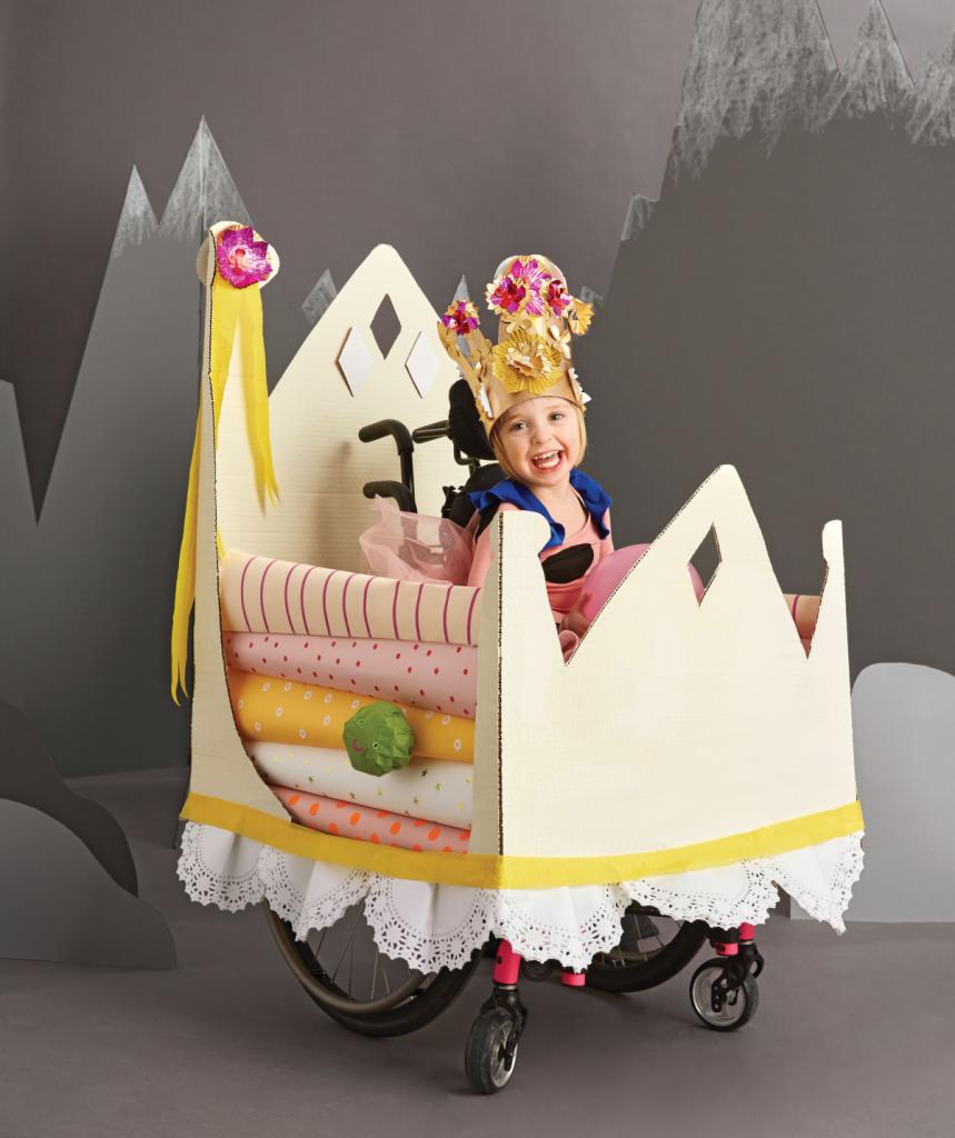 - Colchões: enrole várias folhas de papel de presente em tubos; prenda cada uma delas (elas devem ser um pouco mais longas que a cadeira de rodas, para que tenham espaço para prender à estrutura da cama). Em seguida, cole-os no interior do quadro com fita.