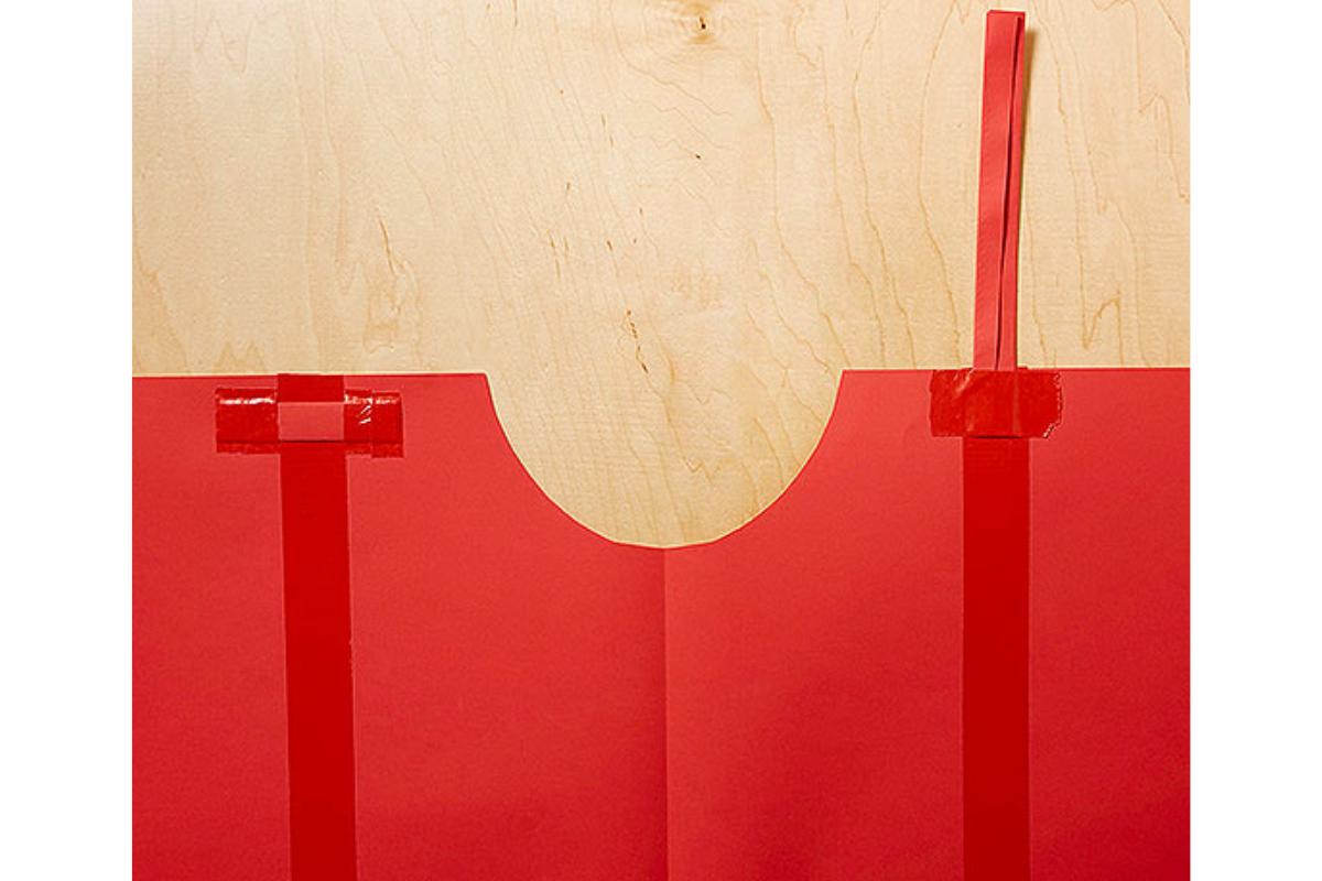 - Junte três folhas de papel vermelho e prenda com a fita isolante para formar uma grande retângulo.