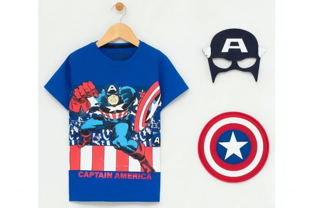 Look completo para curtir o Carnaval. Capitão América com máscara, blusa e escudo. Fantasia Capitão América, R$ 59,90, RENNER, renner.com.br
