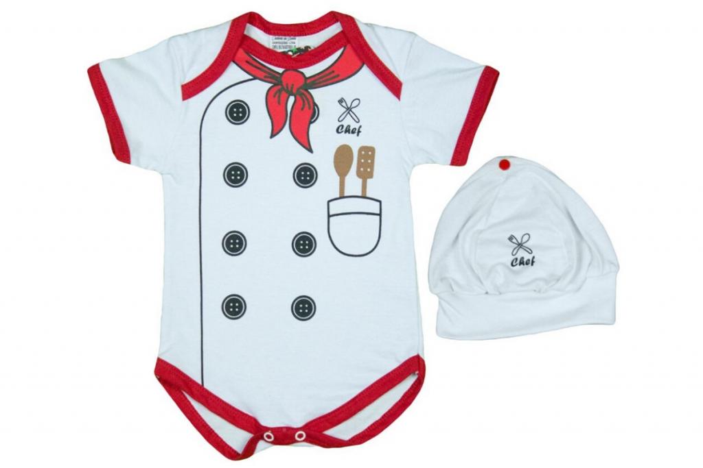 Temos para os bebês também! Body de chef de cozinha com um boné. Fantasia de Chef, R$ 42,90, Clubinho da Landa, shoptime.com.br