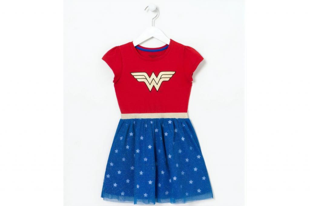 Vestido para a criança que curte super heróis e não perde o estilo! Vestido Mulher-Maravilha, R$ 79,90, RENNER, www.renner.com.br