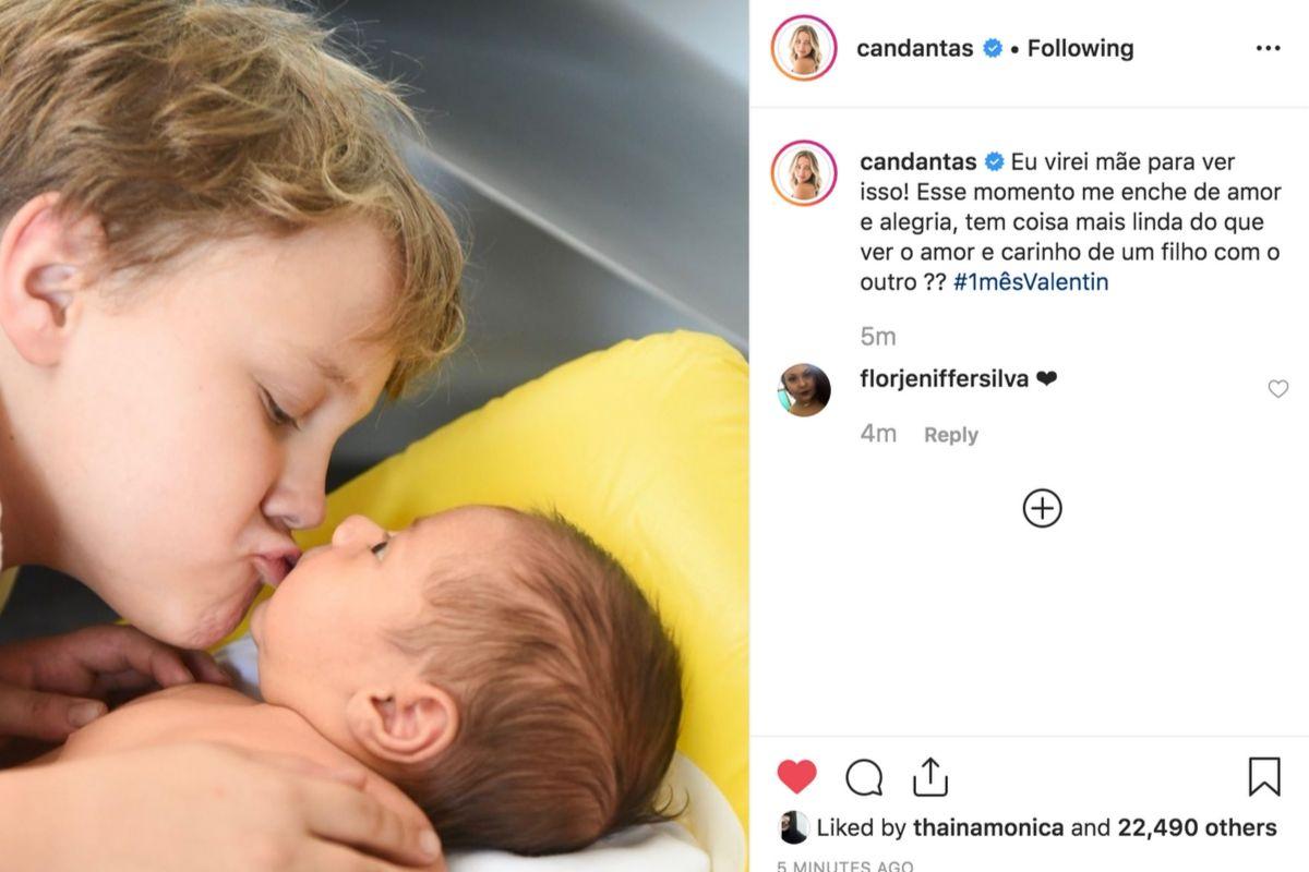 Entre os comentários elogiando o clique dos irmãos, muitos seguidores repararam na forma que Davi Lucca interage com o novo membro da família. “Deus abençoe sempre vocês. Lindo mesmo amor de irmãos”, escreveu internauta. “É lindo de se ver o amor que o Davi tem pelo Valentin”, escreveu outra. “Como ele é carinhoso com o irmão!”, afirmou mais uma.