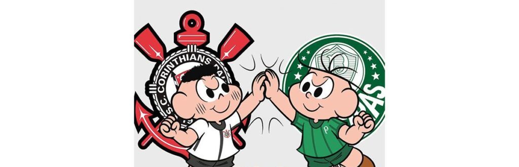 E onde entra a Turma da Mônica? os personagens de Maurício de Souza, Cascão e Cebolinha, estrelam a capa da playlist que o Spotify preparou para a ocasião. Acompanhar a playlist do Palmeiras e do Corinthians.
