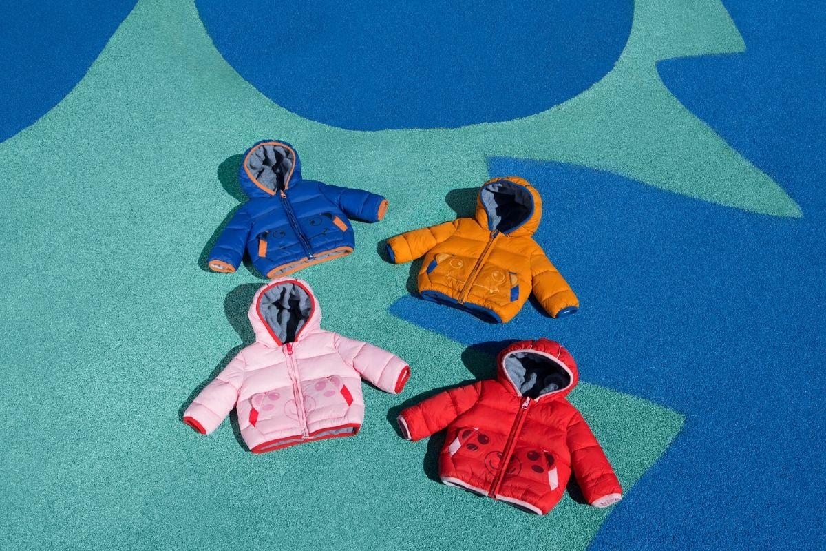 A nova coleção transformou o plástico reciclável em uma pasta, que vira o tecido da jaqueta. A gente achou demais! Livre de materiais de origem animal, as garrafas são limpas, moídas e derretidas, antes de chegar ao guarda-roupa das crianças em uma peça estilizada.