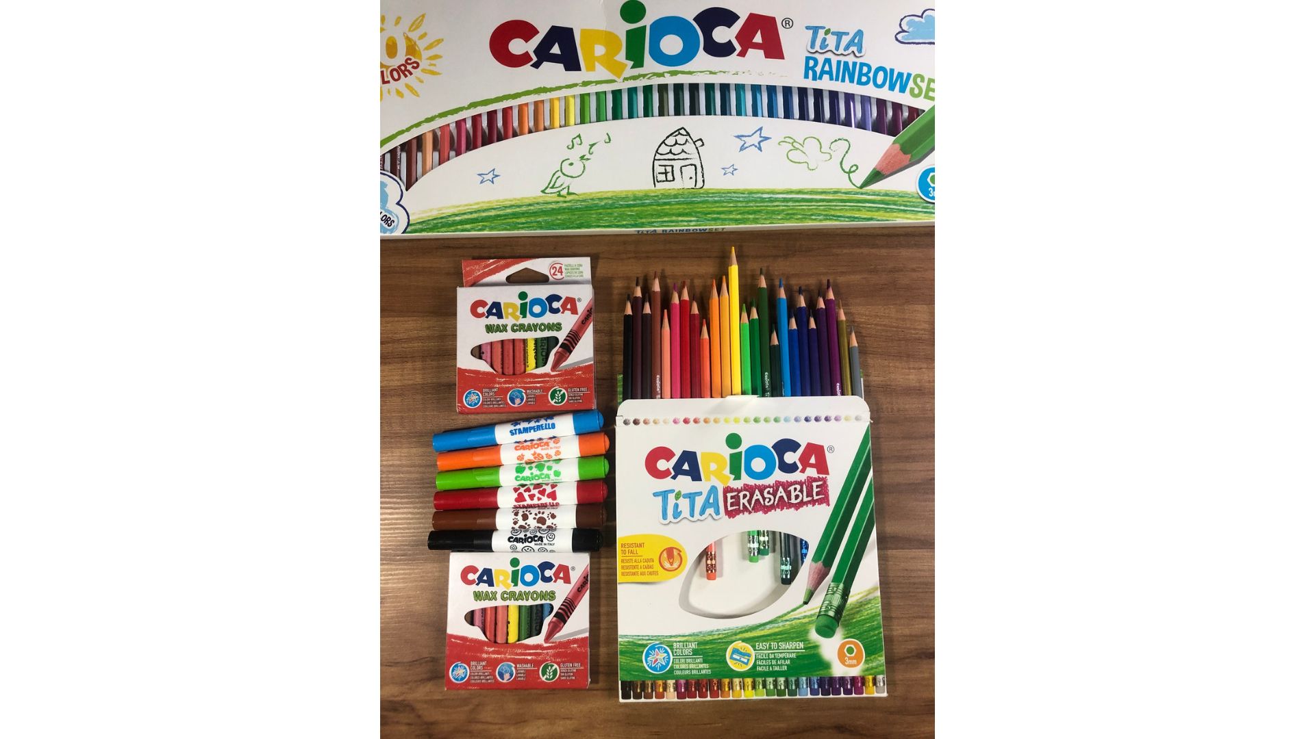Os lápis de cor ajudam seu filho a estimular a imaginação. Na imagem, as linhas de giz de cera, canetas hidrográficas com carimbo e Tita Erasable da CARIOCA, os lápis de cores apagáveis(Foto: Divulgação)