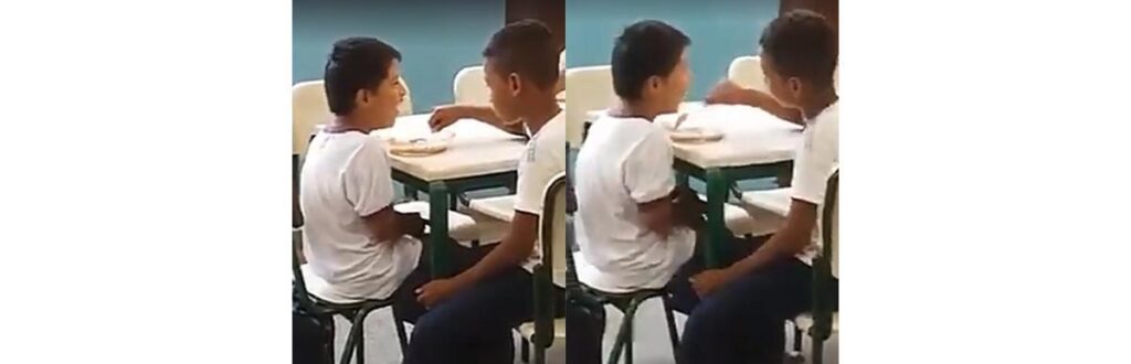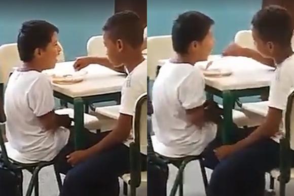 As crianças, na sua simplicidade de ver o mundo, sempre têm algo para nos ensinar. Em uma escola, durante a merenda, um menino percebeu que o colega estava com dificuldade para se alimentar. A criança não pensou duas vezes e foi ajudar o amigo. Alguém gravou a cena e colocou nas redes sociais e vídeo bombou! Foram mais de 7 milhões de visualizações. Assista: