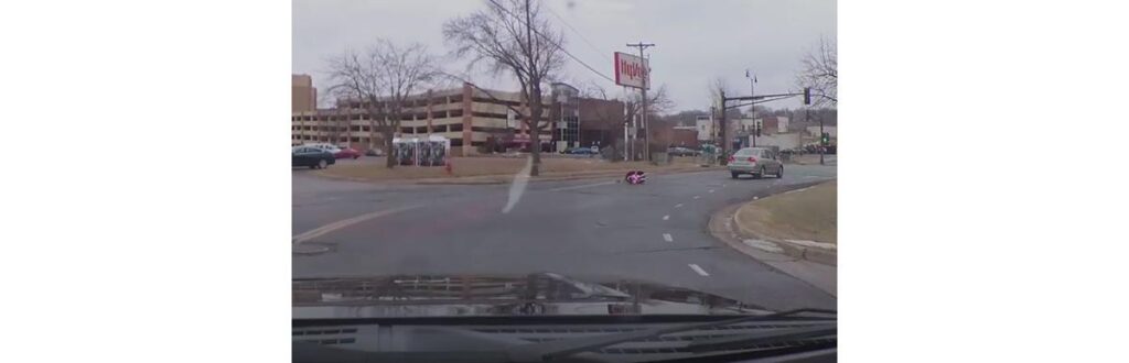 Parece até cena de filme, mas não é. Um americano conseguiu filmar o momento exato em que uma criança cai de dentro de um carro em movimento, em Mankato, no estado de Minnesota. No vídeo, é possível ver a cadeirinha caindo no meio da rua enquanto o veículo faz a curva e depois ele segue viagem, sem perceber o acidente.