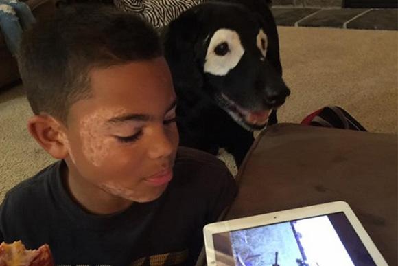 Rowdy é um cachorro com vitiligo que faz o maior sucesso na internet. Para você ter uma ideia, ele tem mais de 83 mil seguidores no Instagram. Agora ele está ajudando Carter Blanchard, um menino de oito anos dos Estados Unidos, a recuperar sua autoestima. A criança sofre com a mesma condição de pele que o animal.
