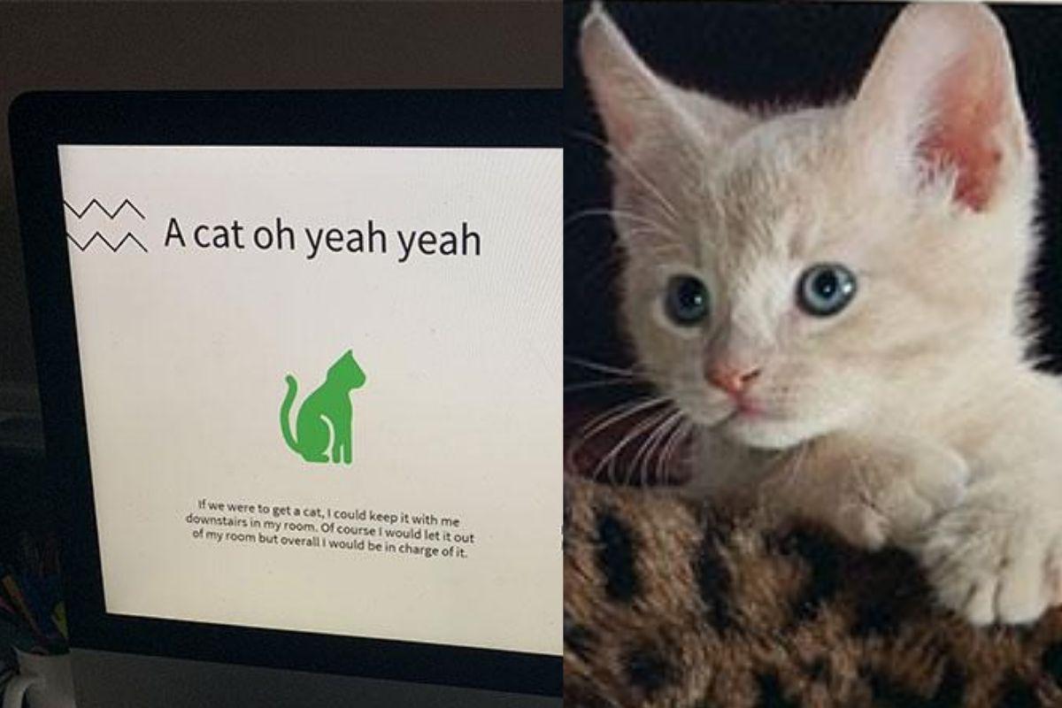 Criança faz apresentação de slides pra convencer os pais a adotar um gato (Foto: reprodução Twitter / BoredPanda)