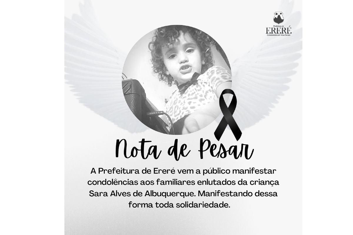 A prefeitura da cidade de Ereré divulgou uma nota de pesar pelo falecimento de Sara. Estava escrito: “O Governo do Ereré manifesta profundo pesar pelo falecimento da criança Sara Alves de Albuquerque. A mesma era atendida pelo programa Criança Feliz de Ereré”, se referindo ao programa social que a menina participava”.