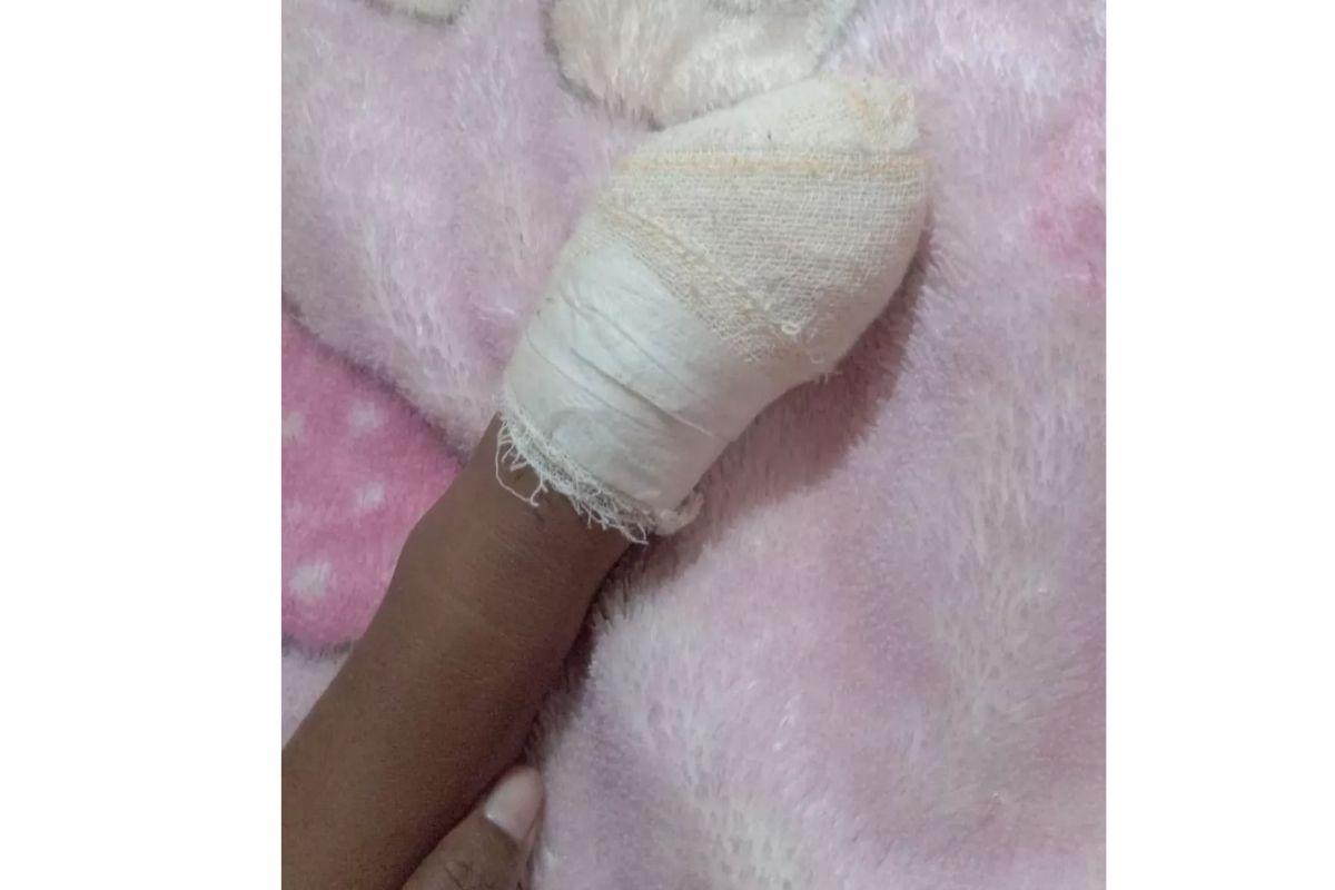 Com o impacto, a menina teve um leve esmagamento na ponta do dedão. A mãe, Maria Gabriela Lopes, contou que a filha sentiu tanta dor que acabou dormindo a caminho do hospital. Segundo ela, a família não imaginava que o brinquedo poderia causar um acidente.