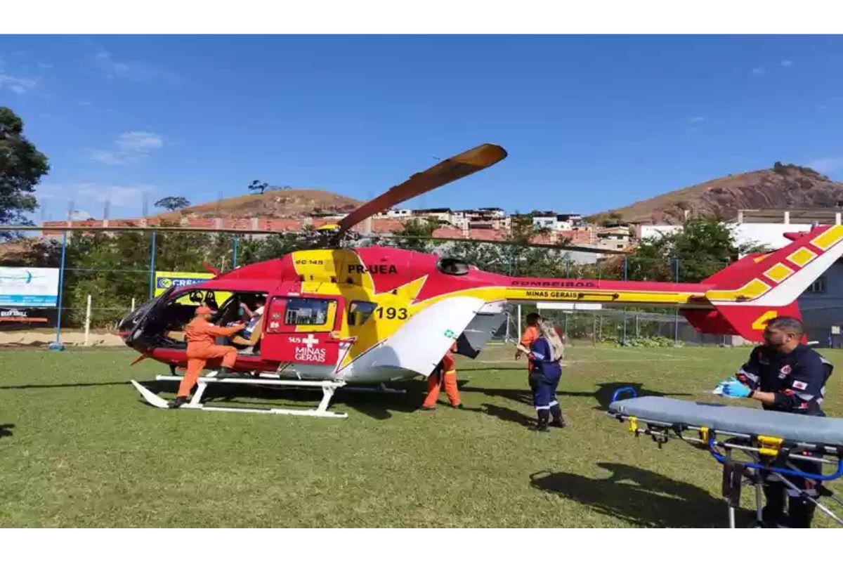 A vítima foi levada de helicóptero (Foto: Reprodução/ Prefeitura de São Francisco do Glória)