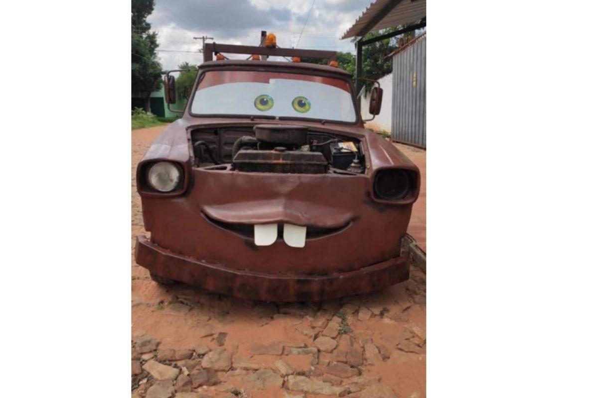 O paraguaio Pablo é mecânico, e teve a ideia de personalizar seu veículo no personagem Mater, da franquia “Carros” da Pixar. O filho, Mateo, iria fazer 1 ano e o pai passou meses realizando o projeto. Até o nome é parecido!