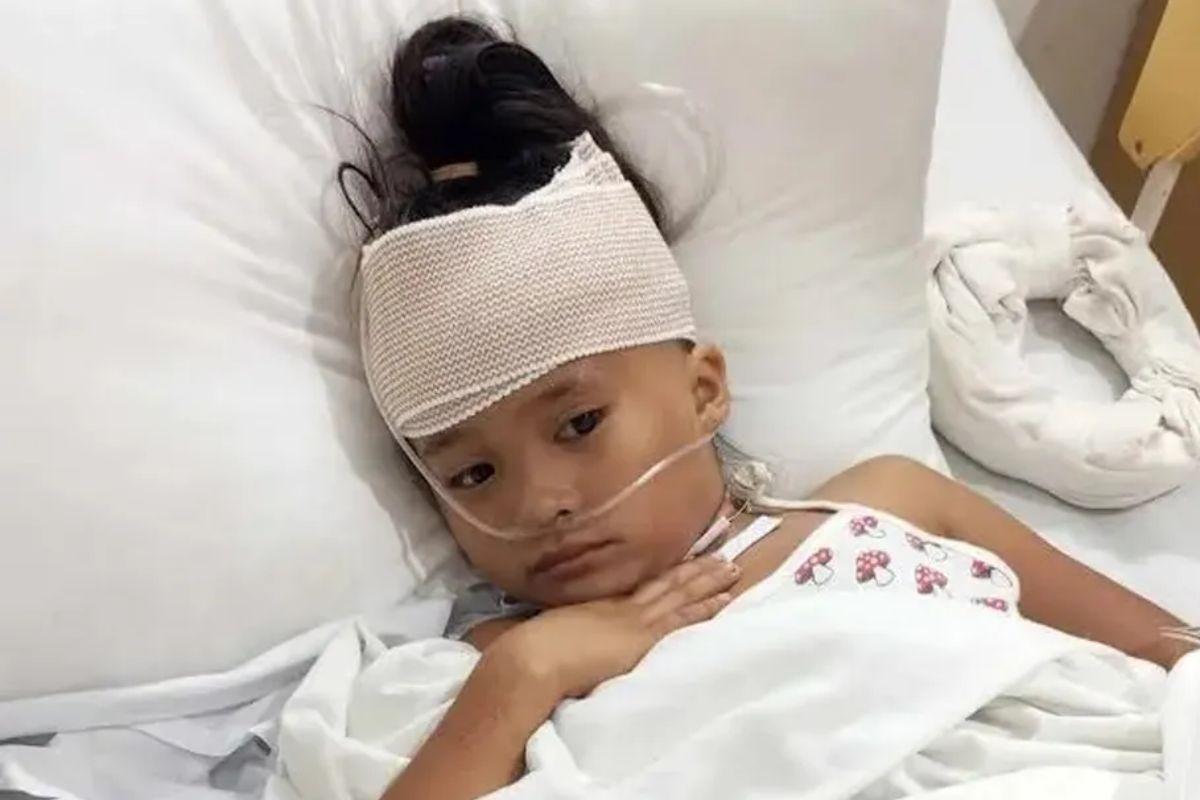 A menina, de 9 anos, passa uma semana com tesoura na cabeça e agora está se recuperando no hospital (Foto: Reprodução/Redes Sociais)
