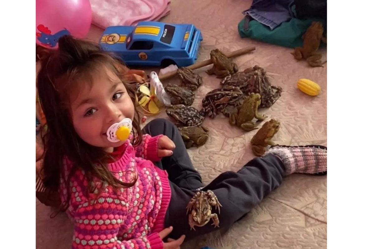 Menina que viralizou ao brincar com sapos ganha festa temática