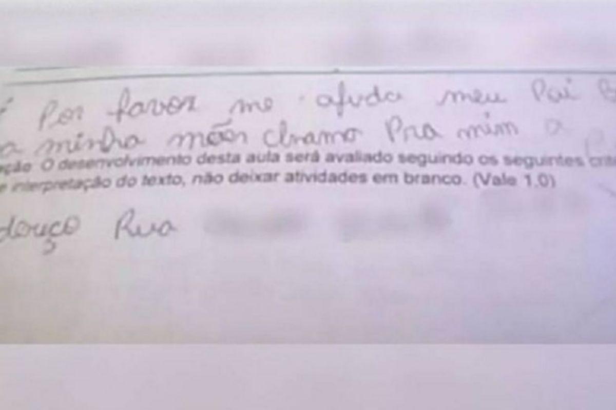 “Por favor me ajuda. Meu pai bate na minha mãe. Chama pra mim a polícia”, escreveu ele no fim da folha, seguido do endereço em que a família mora.