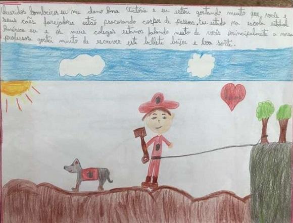 Um dos desenhos vem acompanhado de uma ‘carta’, que diz: “Queridos bombeiros, estou gostando muito que vocês e seus cães farejadores estão procurando corpos de pessoas. Eu e meus colegas estamos falando muito de vocês. Gostei muito de escrever este bilhete. Beijos e boa sorte”.