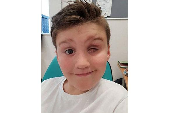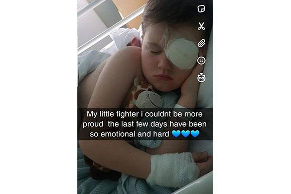 Stacey está fazendo uma “vaquinha” para comprar uma prótese de olho para o filho, uma vez que ele já sofreu bullying dos colegas, que chamaram o menino de “Popeye”.