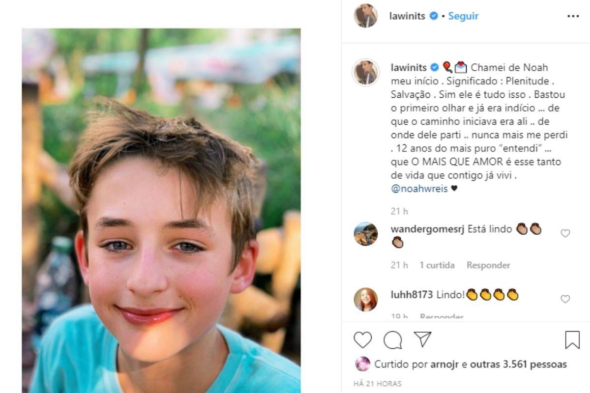 Nos comentários, os fãs tiveram as melhores reações ao ver como o menino está. “Salve Noah!!! Lindão do tio!”, disse o diretor Miguel Falabella. “Nossa!! Como está cada dia mais lindo”, comentou uma internauta. “Tá um rapaz, lindo”, elogiou outro seguidor.