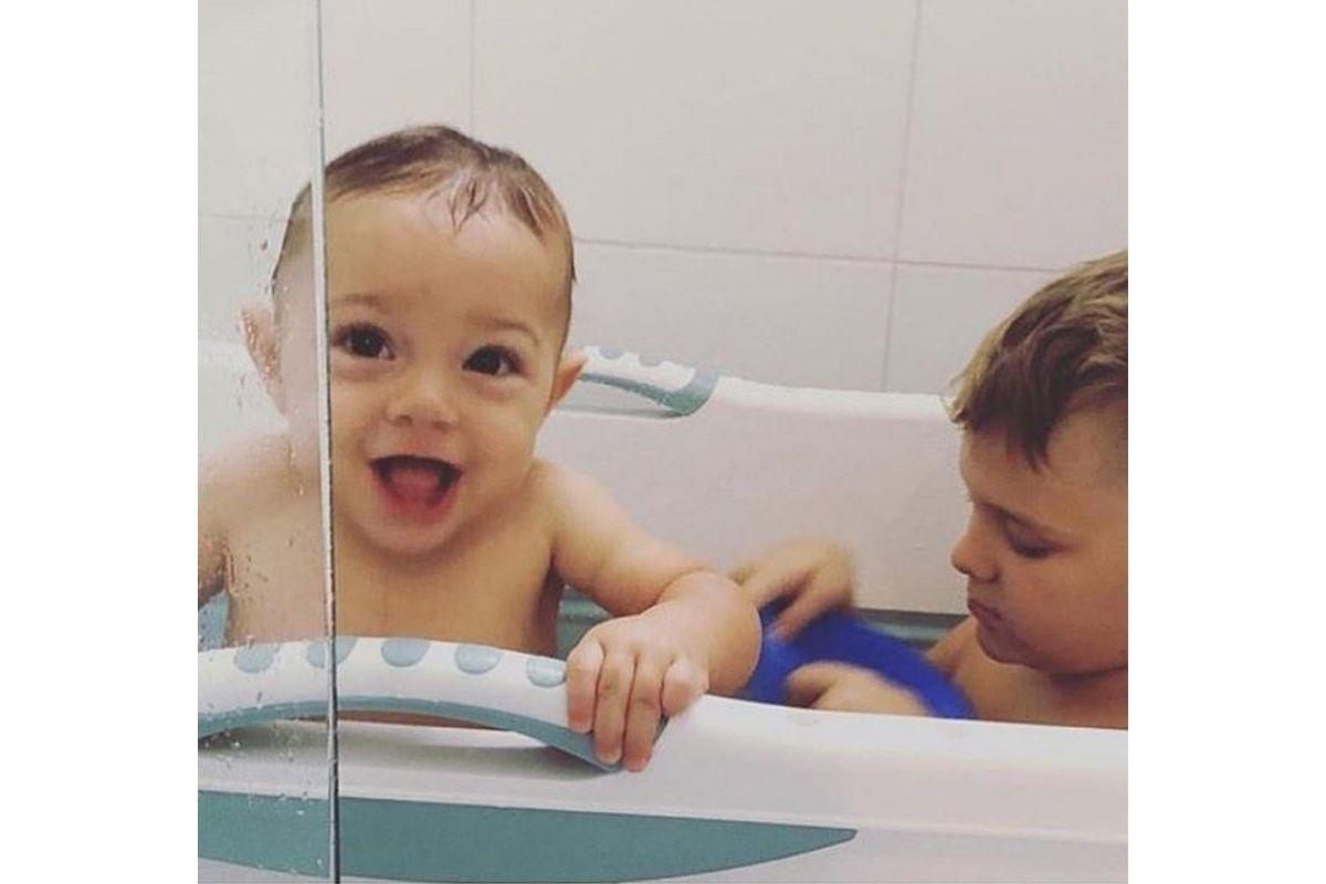 Davi Lucca ama estar presente na vida de Valentin, e é um super irmão (não temos dúvidas!). Na hora do banho, além de se divertirem muito, o menino é super cuidadoso e sempre está de olho para ver se o caçula está bem. Irmão coruja!