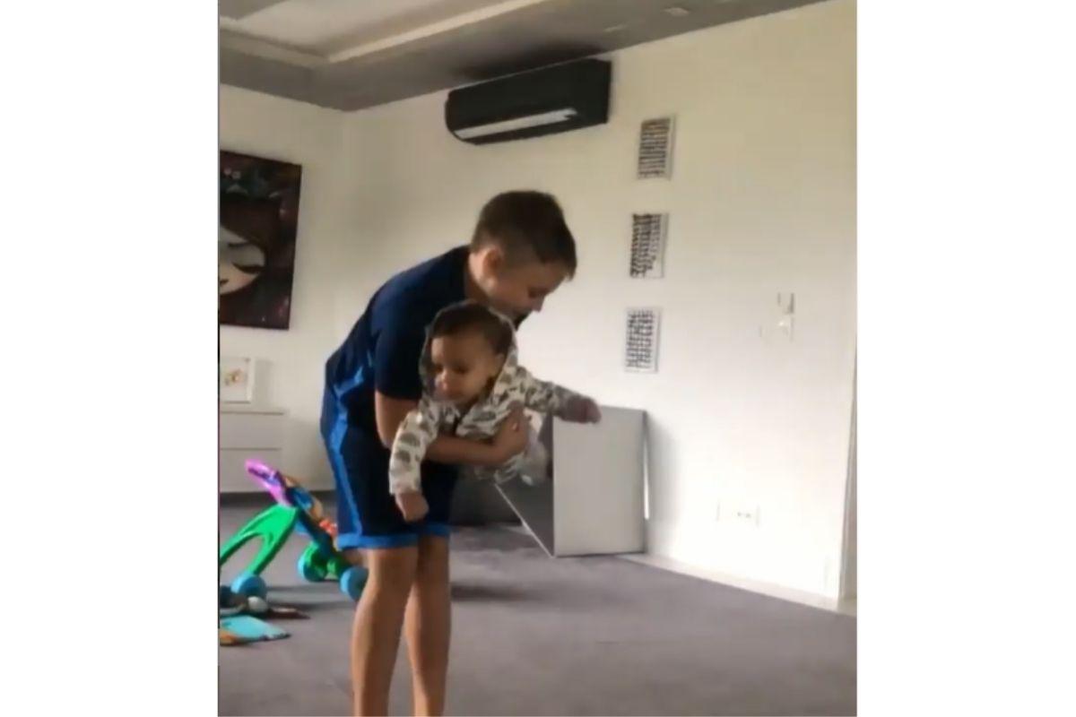 Além de amar fazer aviãozinho com Valentin, Davi Lucca provou que também ama cantar para ele durante as brincadeiras! E claro, o bebê fica prestando atenção em tudo e curtindo cada momento com o irmão mais velho.