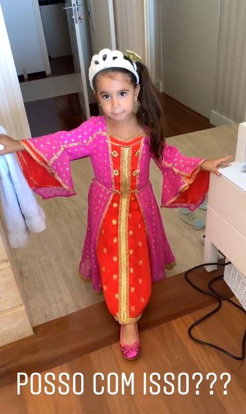 “Posso com isso?”, disse Deborah. “Eu estava pronta pra sair e eis que entra no meu quarto… Quem é você?”, perguntou a mãe que prontamente foi respondida pela filha, dizendo ser a princesa Jasmine. “Que roupa linda, Jasmine! Filha, eu te amo!”, declarou.