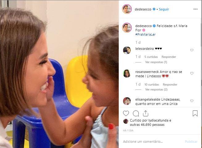 Maria Flor, de 3 anos, é fruto do relacionamento de Deborah Secco com o ator Hugo Moura. No Dia dos Pais, 11 de agosto, Deborah não poupou elogios para o marido. Em um vídeo publicado no Instagram, a atriz fez uma declaração enorme para Hugo, falando sobre a paternidade e o laço que ele criou com a filha.