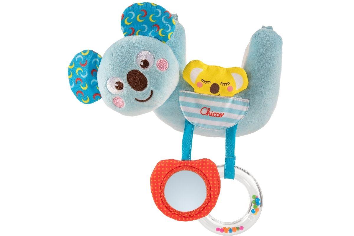 O brinquedo pode ser acoplado a barra de proteção do carrinho, moisés ou berço. O produto possui som ‘crocante’ na orelha do bebê coala, espelho em forma de maçã e anel transparente cheio de bolinhas que atraem a atenção da criança.