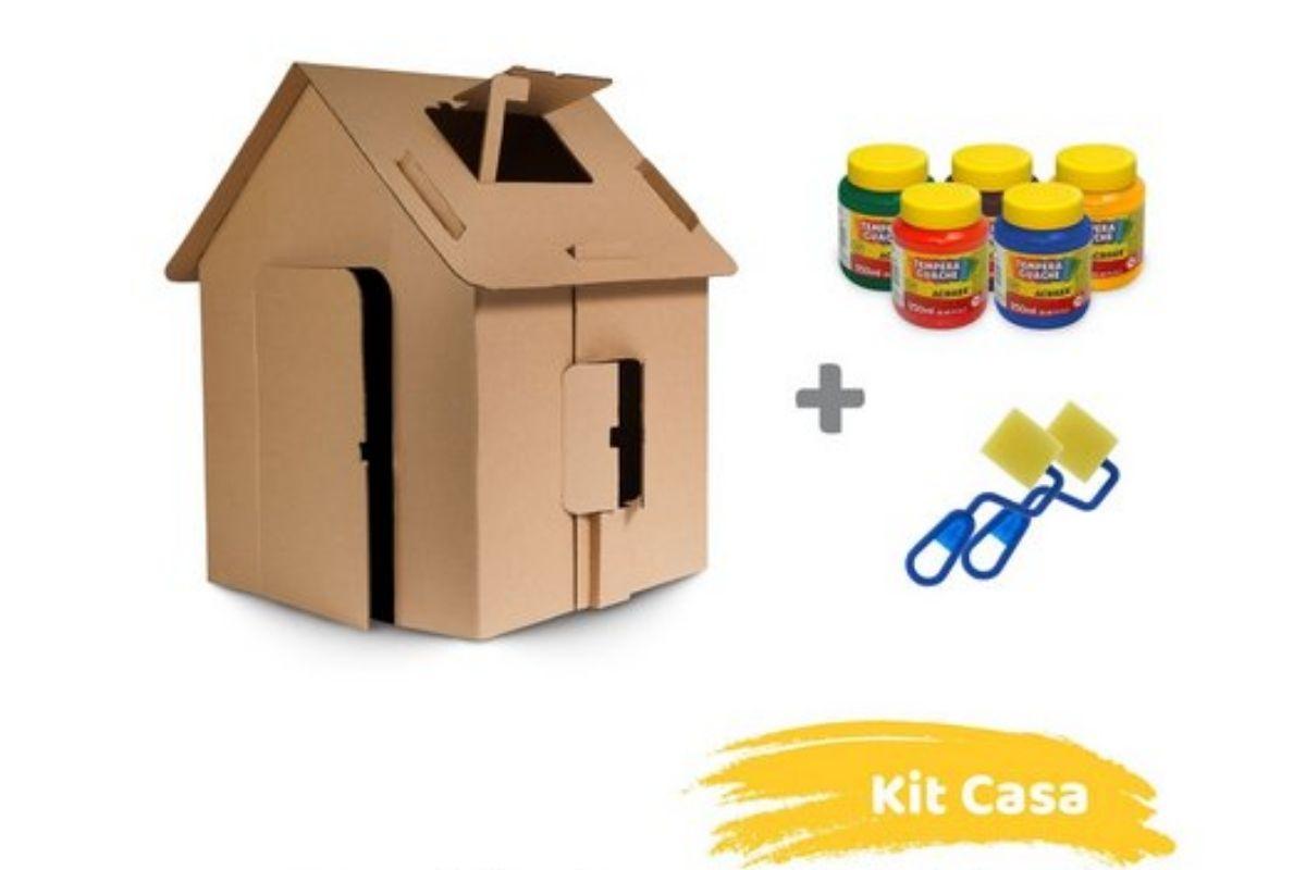 Dá para se divertir e explorar a criatividade com essa casinha de papelão, que além de poder ser colorida da forma que eles preferirem, pode se montada e desmontada!