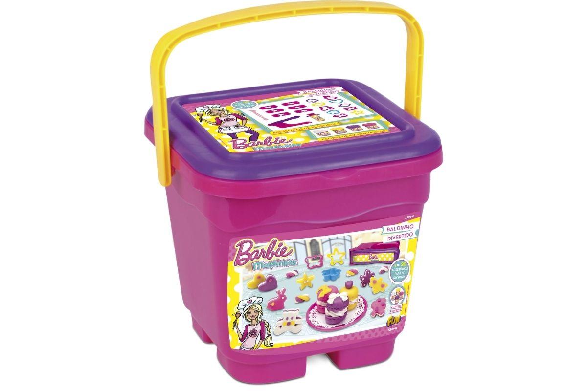 O balde conta com 4 potes de massinha e 22 duas peças para ajudar as crianças a abusarem da imaginação!