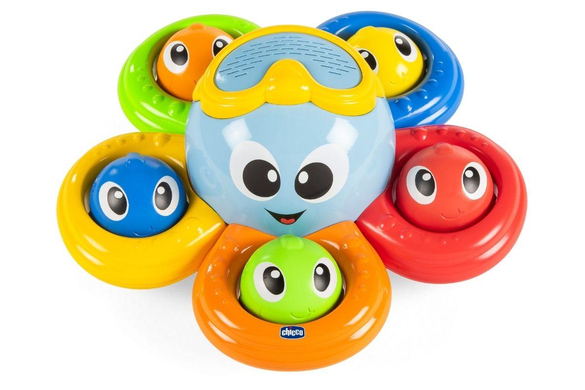 Esse brinquedo é feito para bebês, principalmente durante o banho. As crianças podem colocar cada peixe em um tentáculo para estimular a associação lógica entre as cores, brincar espirrando água com os peixes e também criar um efeito de chuva, colocando e tirando da água o polvo.