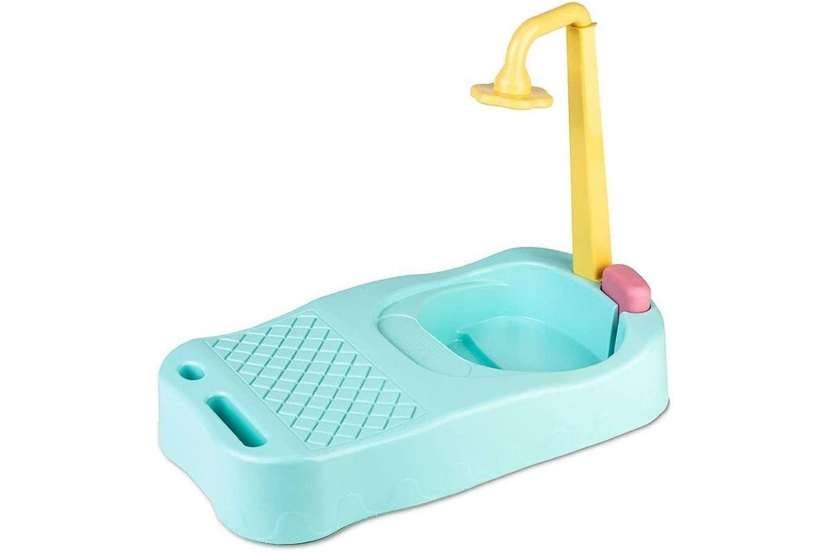 A brincadeira de boneca vai ficar ainda mais divertida com essa banheira com um chuveiro em formato de flor que sai água de verdade. Ainda tem um trocador que vai deixar a brincadeira parecendo ainda mais real. O preço na Amazon é R$ 99,99 e você pode comprar clicando AQUI.