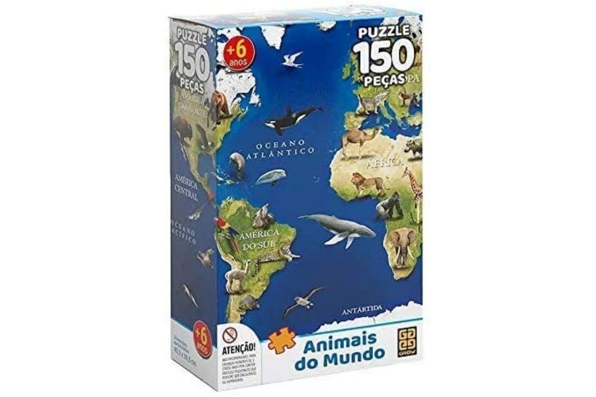 Ainda falando dos animais, mas com um desafio um pouco maior. Esse é um quebra-cabeça de 150 peças que tem a imagem dos principais animais do mundo todo! Vai ter diversão e aprendizado de uma só vez aí na sua casa! Compre na Amazon clicando AQUI, por um preço médio de R$ 24,50.