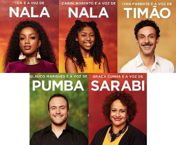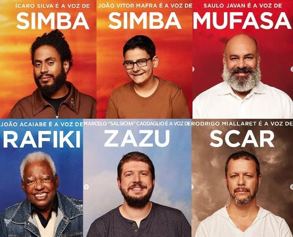 Além deles, outras vozes foram apresentadas: Ivan Parente (Timão), Glauco Marques (Pumba), Graça Cunha (Sarabi), Saulo Javan (Mufasa), Rodrigo Miallaret (Scar), João Acaiabe (Rafiki) e Marcelo Caodaglio (Zazu). Na postagem feita no Instagram, a Disney escreveu: “Um filme épico merece vozes pra lá de especiais”.