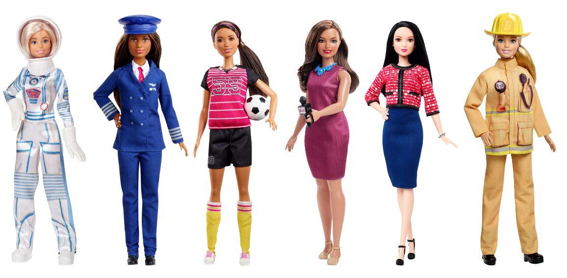 A Barbie é a personagem que bate recordes de profissões. A coleção “Barbie Você Pode Ser Tudo o Que Quiser” traz a Barbie com mais cinco profissões: bombeira, astronauta, jornalista, pilota e candidata.