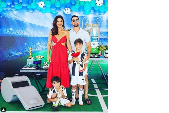 No último do domingo (16), Juliana Paes comemorou o aniversário de 8 anos de seu filho Pedro. A decoração da festa estava linda e o tema futebol foi levado a sério! Tanto o aniversariante, quanto o caçula, Antônio, estavam a caráter com o uniforme do Juventus, time que o Cristiano Ronaldo atualmente joga na Itália. Dá para ver de qual jogador o menino é fã!