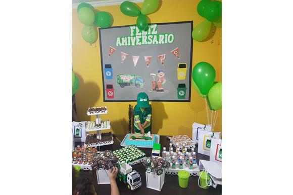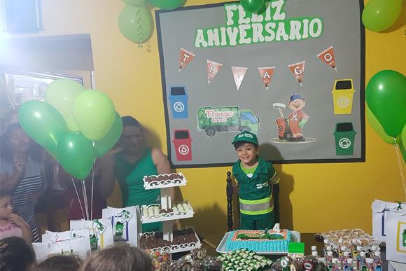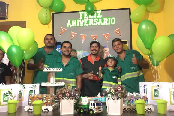 Marcia Oliveira Mousinho, mãe de Thiago, ficou surpresa ao saber o tema que o pequeno queria para o seu aniversário: garis e caminhões de lixo! “Eu não acreditei, perguntei se ele tinha certeza da escolha dele. Ele disse sim e não mudou mais de opinião”, contou a mãe.