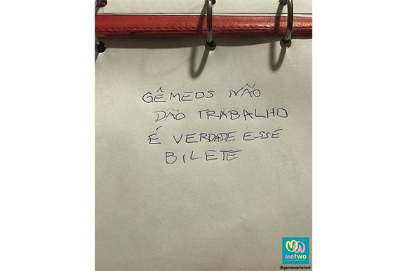 Gêmeos não dão trabalho, é verdade esse bilete (Foto: Reprodução/ Instagram @gemeosmetwo)