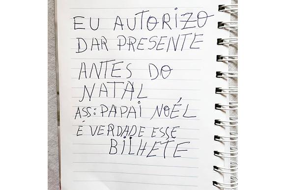 Autorizo a dar presente de natal antes da hora, é verdade esse bilete (Foto: Reprodução/ Instagram @marina_pretti)