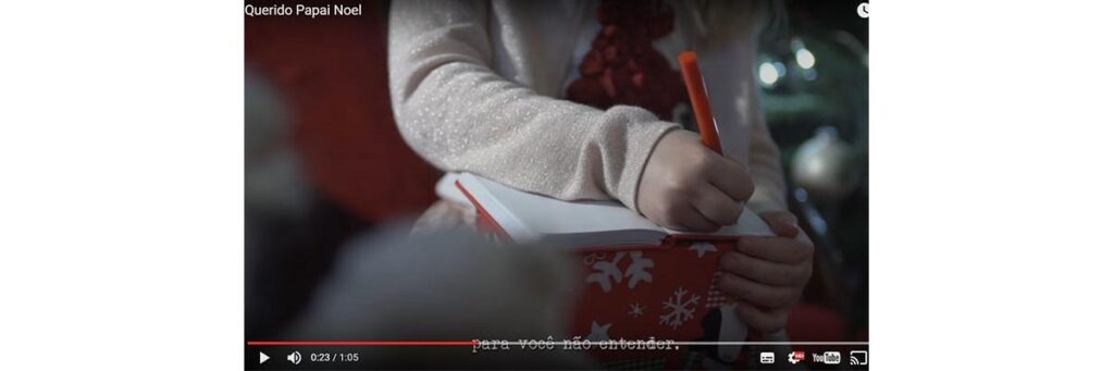 No vídeo, a menina retratada é cheia de personalidade, entende o que quer e questiona por que as coisas não podem ser diferentes. “Querido Papai Noel, posso ser honesta com você? Eu não aguento mais bonecas. Não sei se você sabe, mas meninas também gostam de brincar de astronauta”, ela diz.