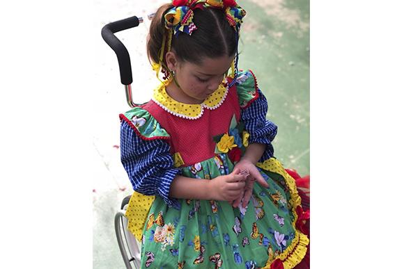 Na festa junina de junho deste ano, a escola fez questão de adaptar as apresentações para que Clara pudesse participar.