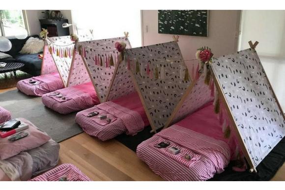 Começou então a procura por coisas para a festa. “Ela e eu nos divertimos muito conversando, procurando, pechinchando e planejando”, contou a mãe ao site Kidspot. No final, ela gastou US$450, “incluindo jantar, café da manhã, atividades e um bolo caseiro”. Ela também comprou as barracas, colchões infláveis, flores, luzes, esmaltes, lençóis, tapetes… Ufa! Tudo compensou financeiramente no fim e o aniversário de sua filha não poderia ter sido mais legal. Confira as fotos: